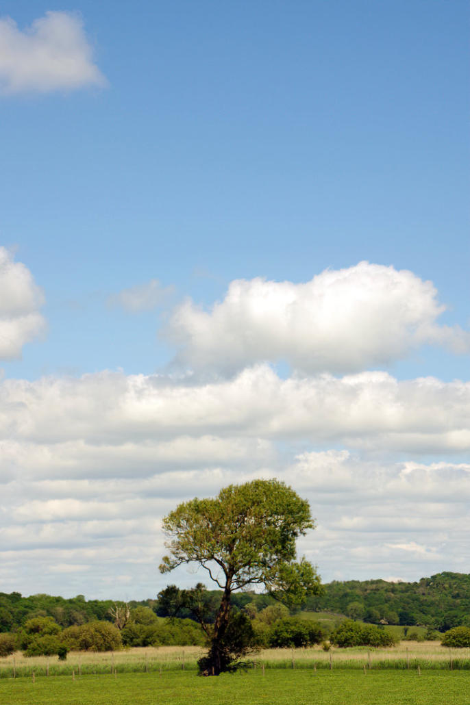 A tree in field with Leighton Moss in the background at side of New Road.