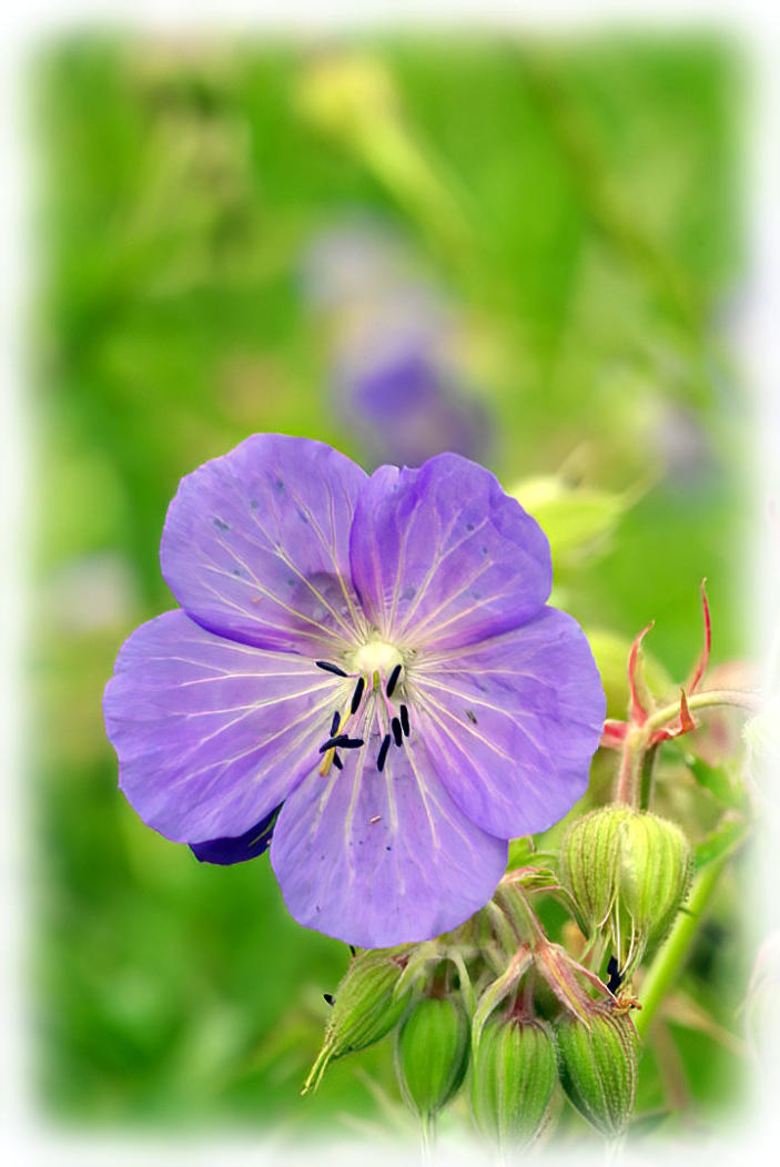 Meadow Crane’s-bill flowering at side of Kellet Lane.