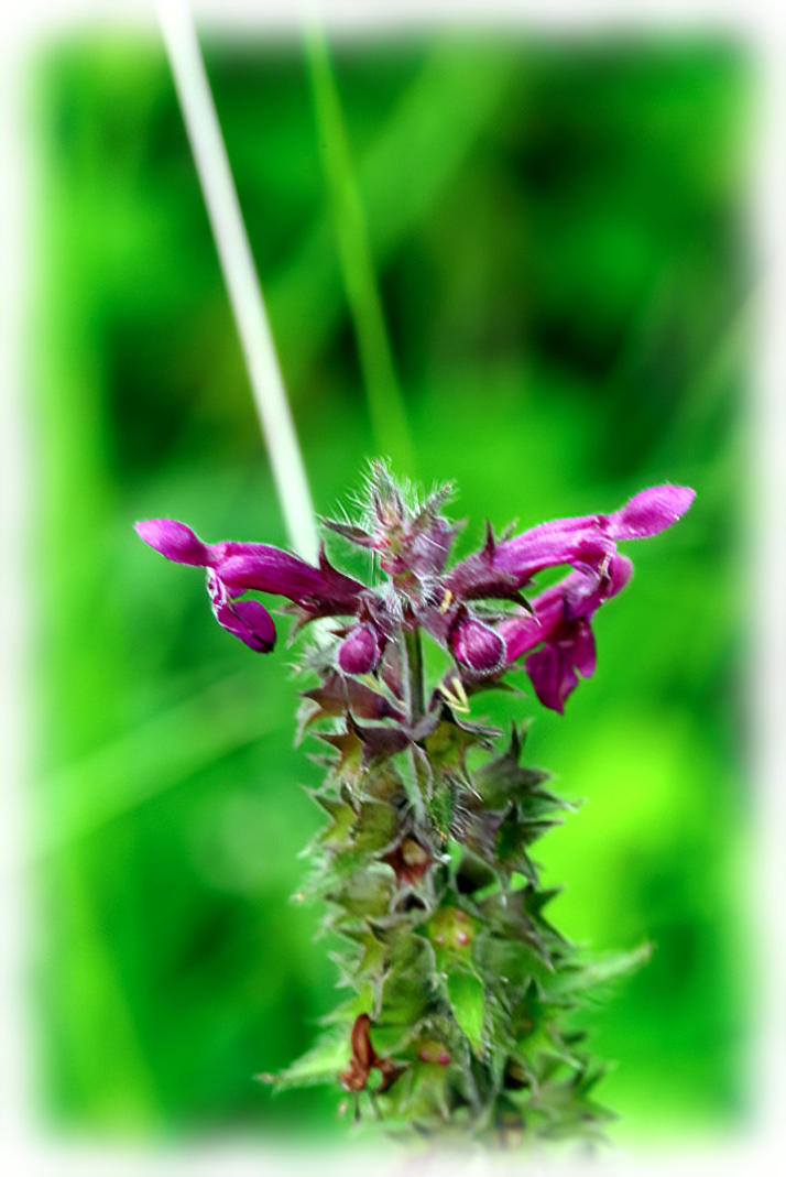 Hedge Woundwort flowering at side of the lane on the climb out of the Keer Valley.