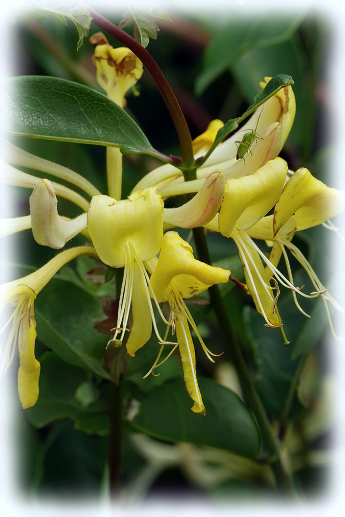 Honeysuckle flowering at side of the lane on the climb out of the Keer Valley.