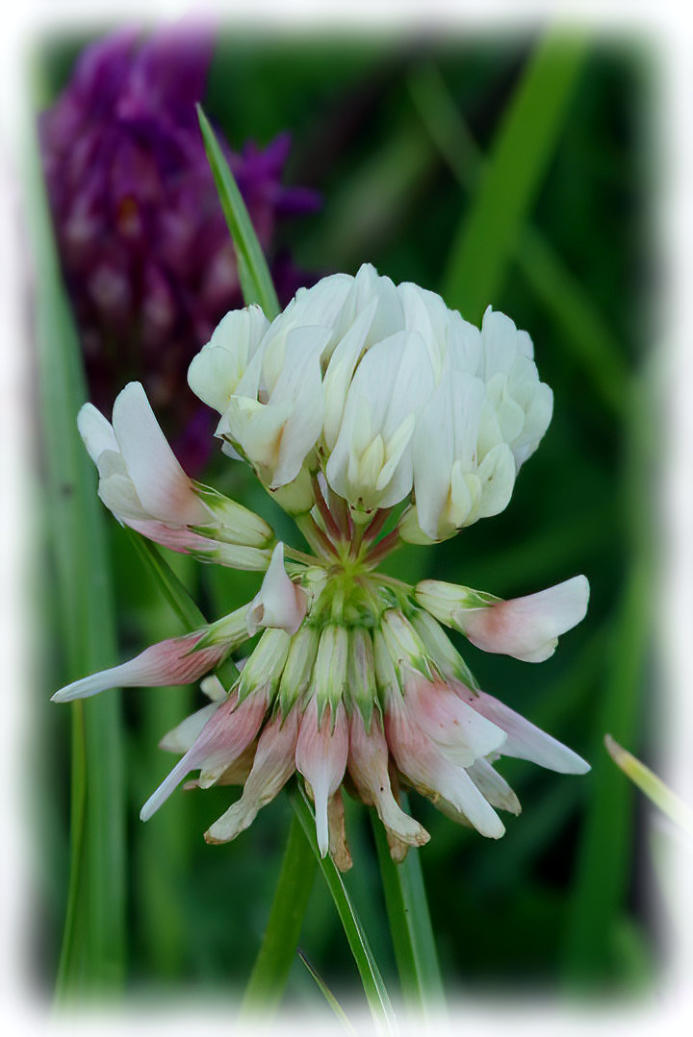 White Clover flowering in the meadow.