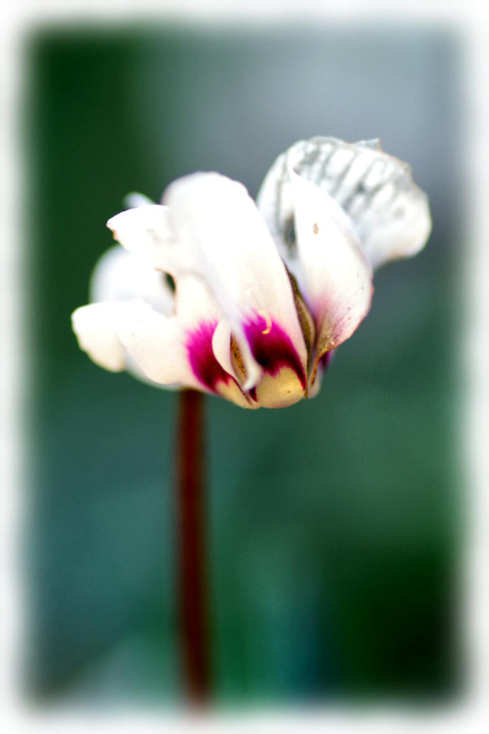 Cyclamen coum in flower in the back garden.