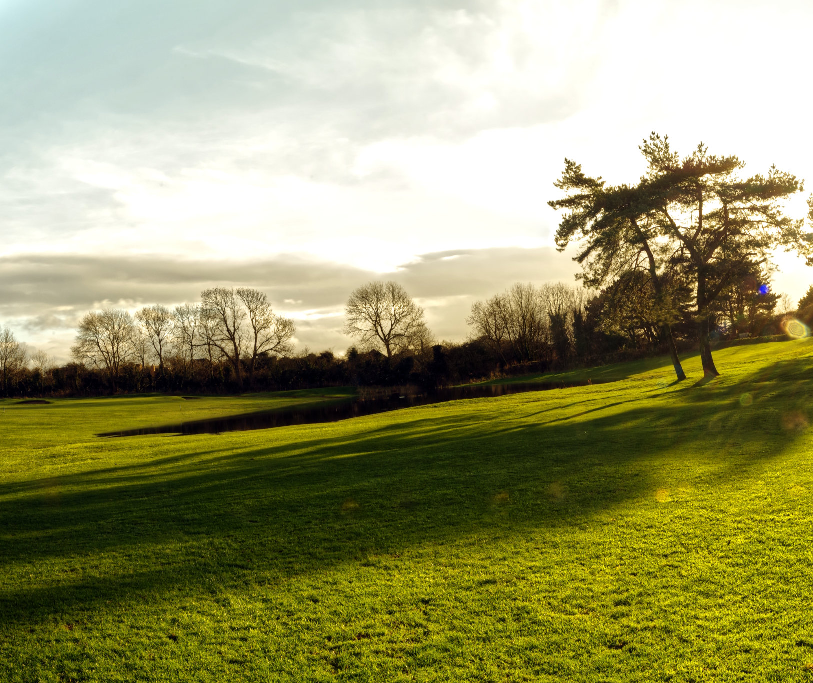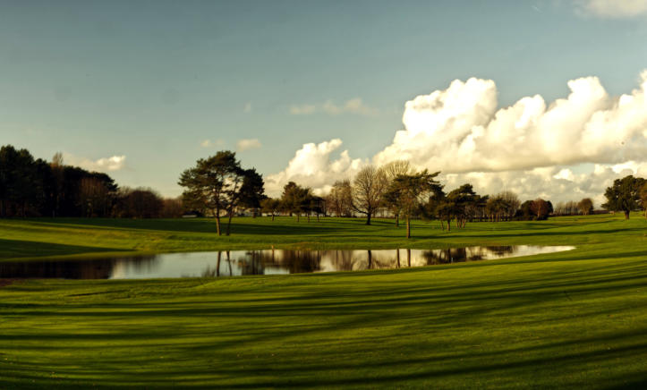 The view looking from 8th fairway across the pond towards 9th tee.