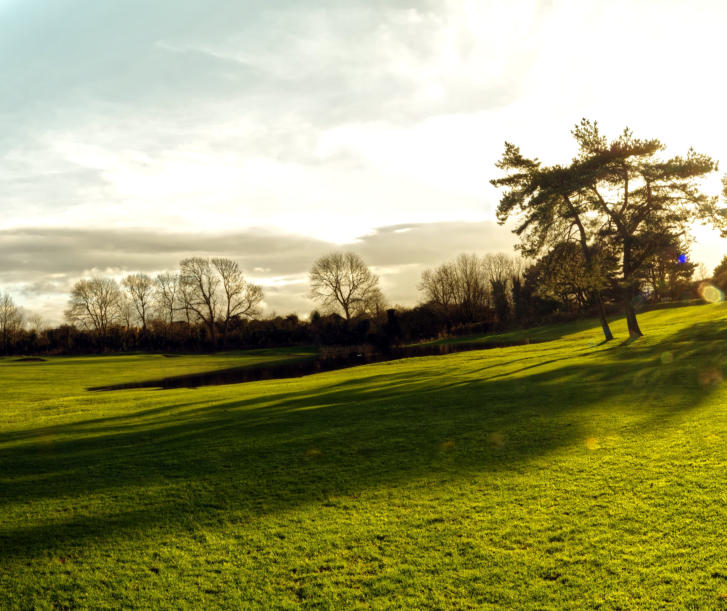 The view looking across the 8th green towards pond by 8th fairway (Click photo for larger image)