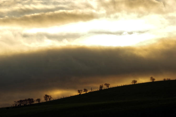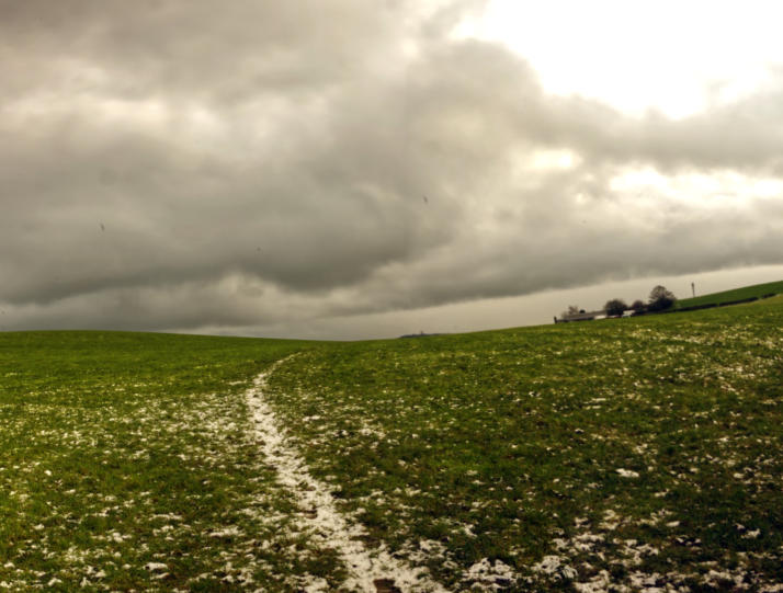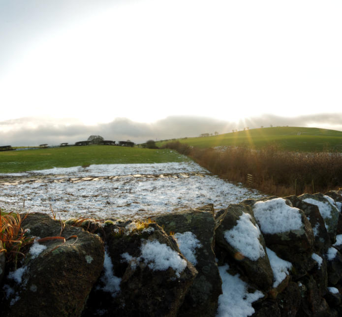 The view from Scargill Lane looking across the fields towards Arrow Barn.