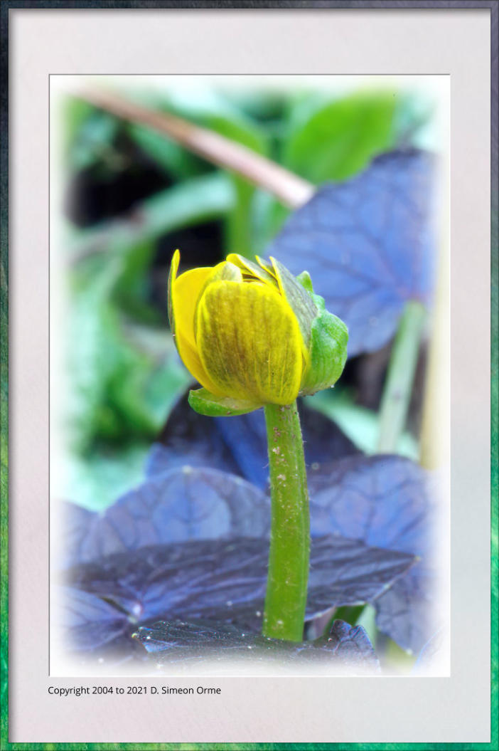 The flower bud of Ranunculus ‘Brazen Hussy’ (Garden Celandine) in the back garden, you can see what’s else was in flower in Simeon’s garden at this link.