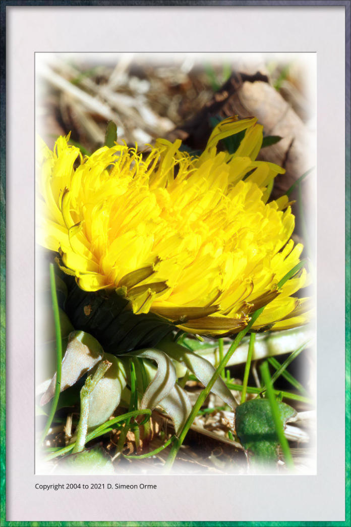 A Dandelion in flower at side of 10th Fairway in deep rough on Morecambe Golf Course.