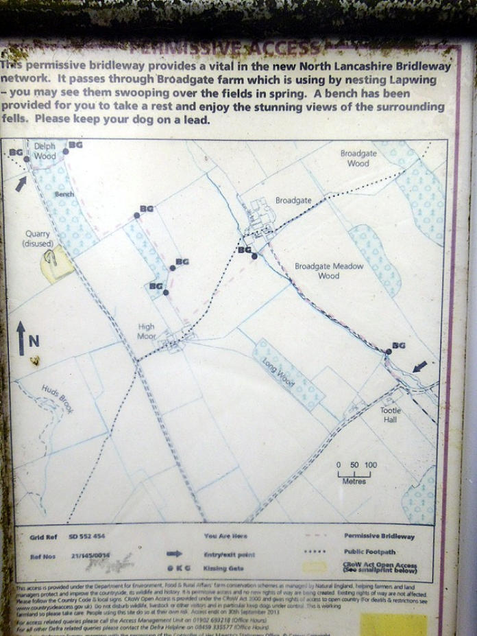 A map of permissive bridleway from Delph Wood to Tootle Hall.