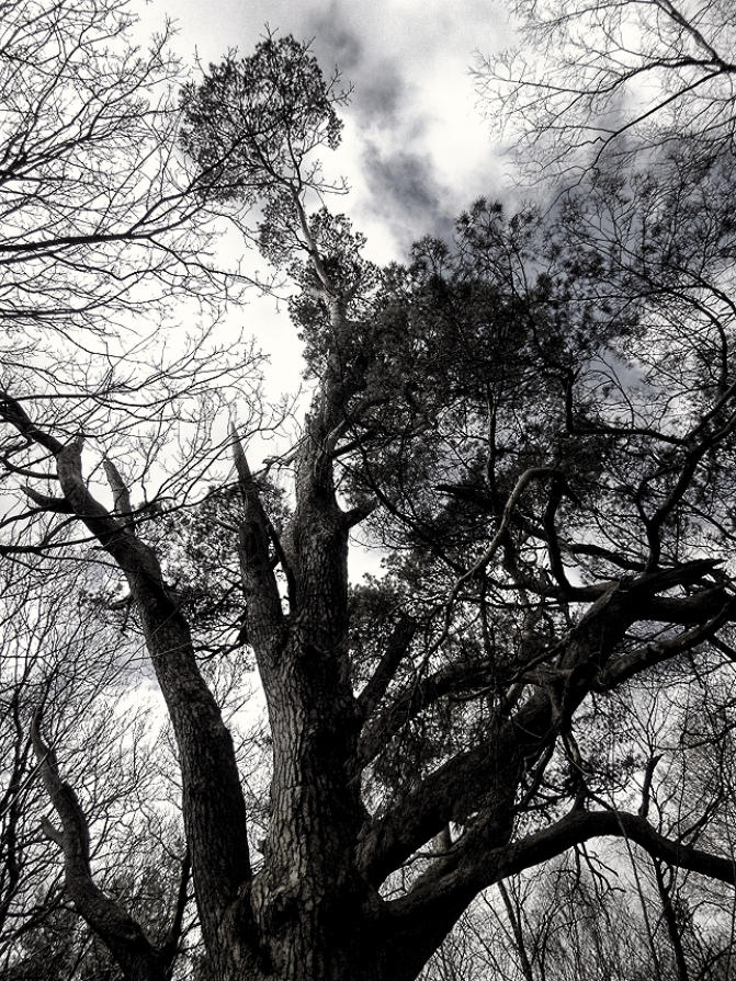A view of Scot Pine in the woods beside the track.