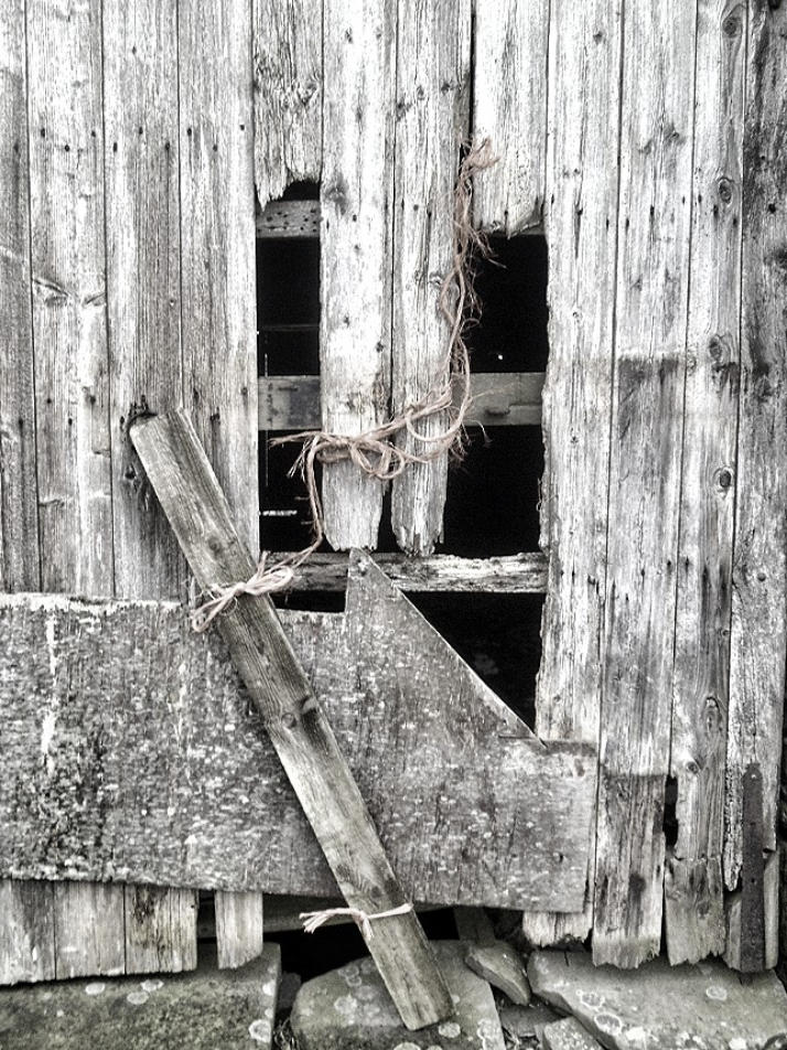 Part of the door of the Barn at side of the track.