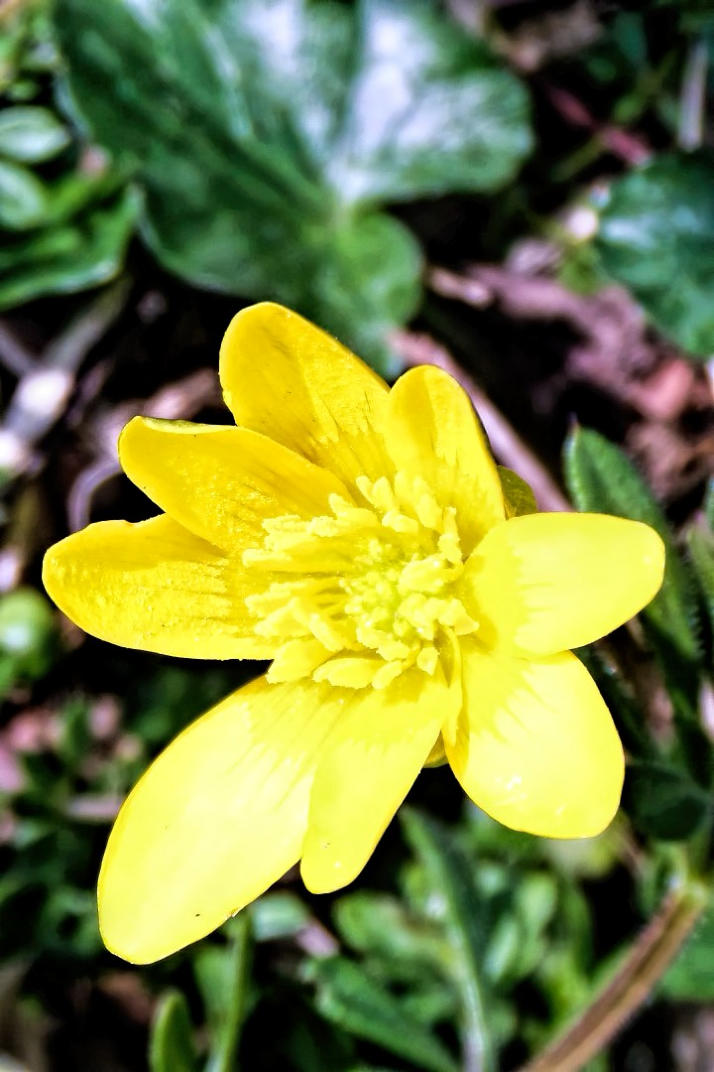Lesser Celandine flowering in the hedgerow.