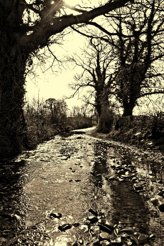 The view looking back along Low Lane. Abbey Beck flows along this section of the track which is interesting