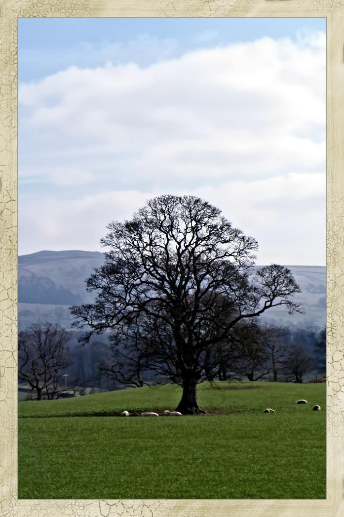 Sheep resting under a tree near Mansergh Hall.
