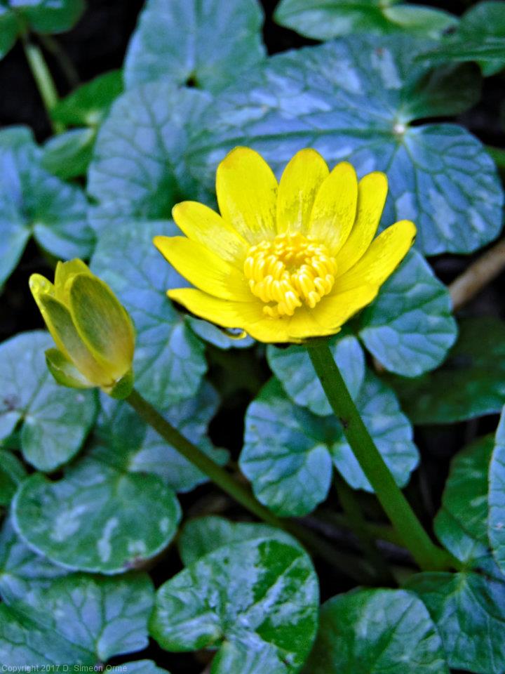 Lesser Celandie in flower at side of the cycle path