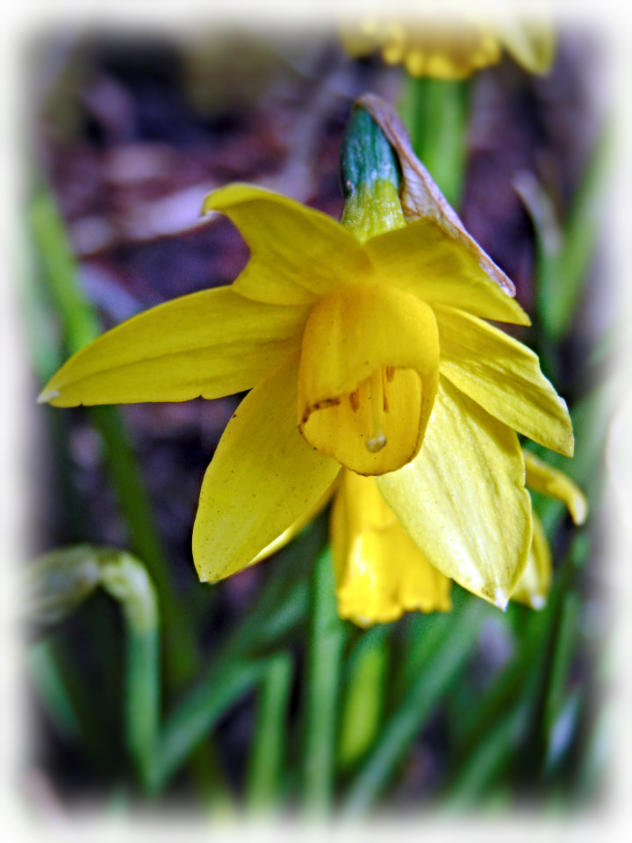Daffodil in flower at side lane