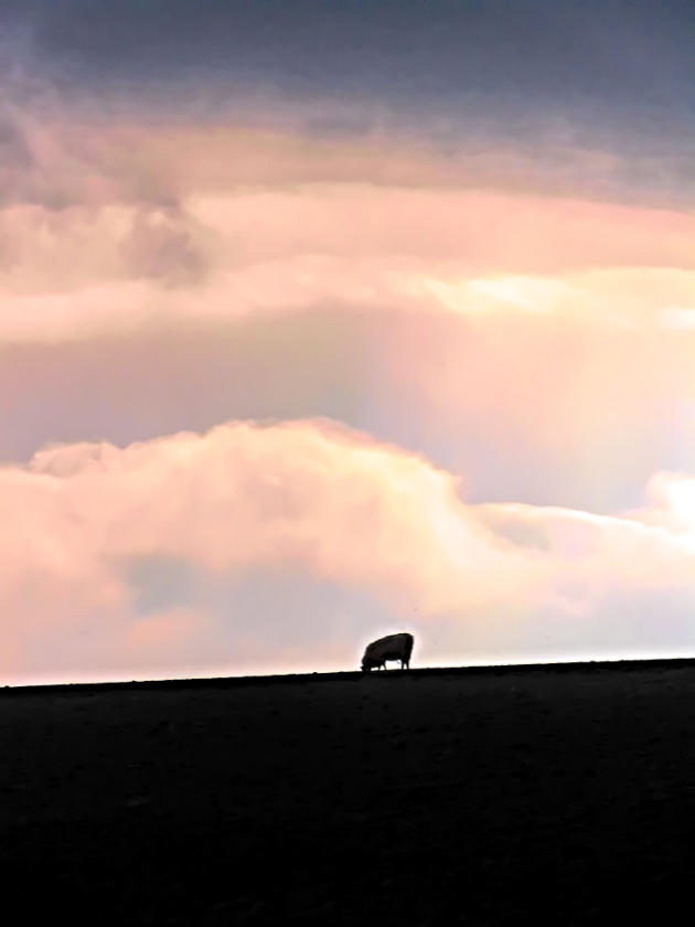 A sheep on the skyline near Cinderbarrow