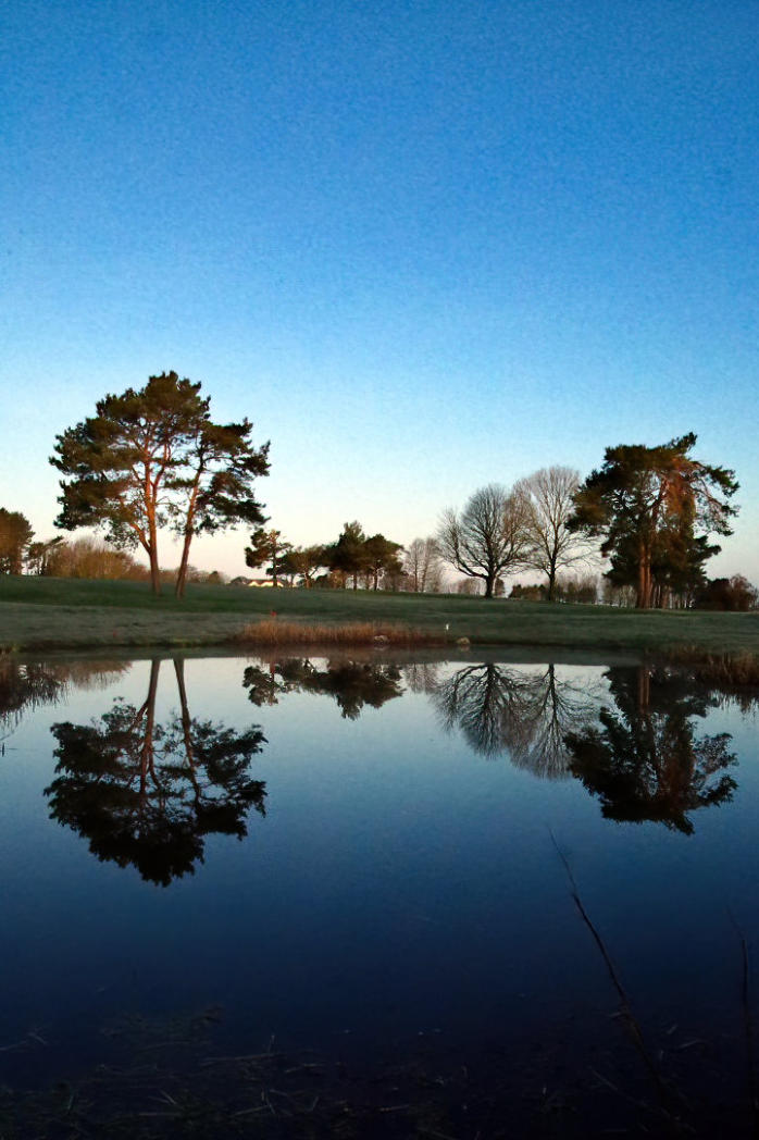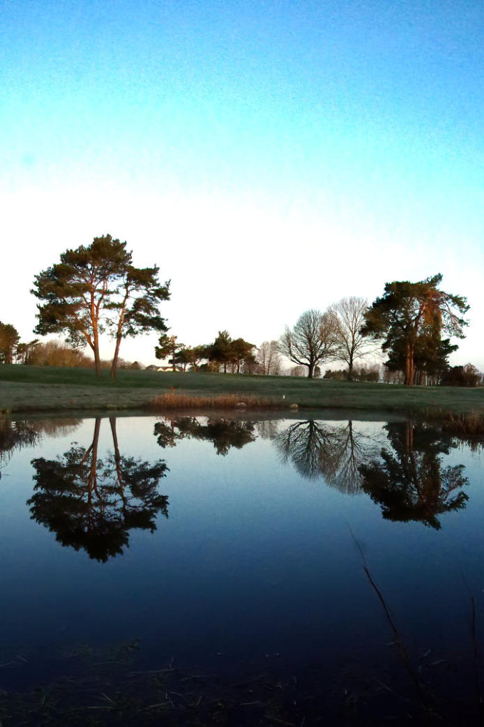 Reflections on the pond by the 8th fairway on Morecambe Golf Course.