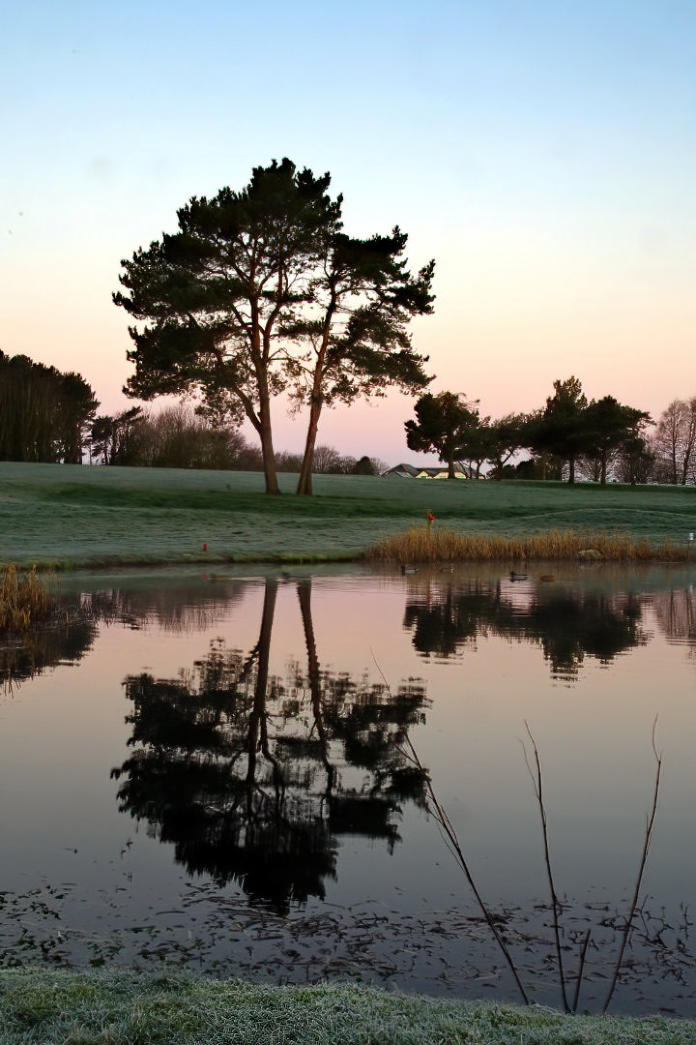 Early morning reflections on the pond by the 8th fairway on Morecambe Golf Course.
