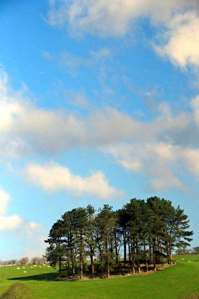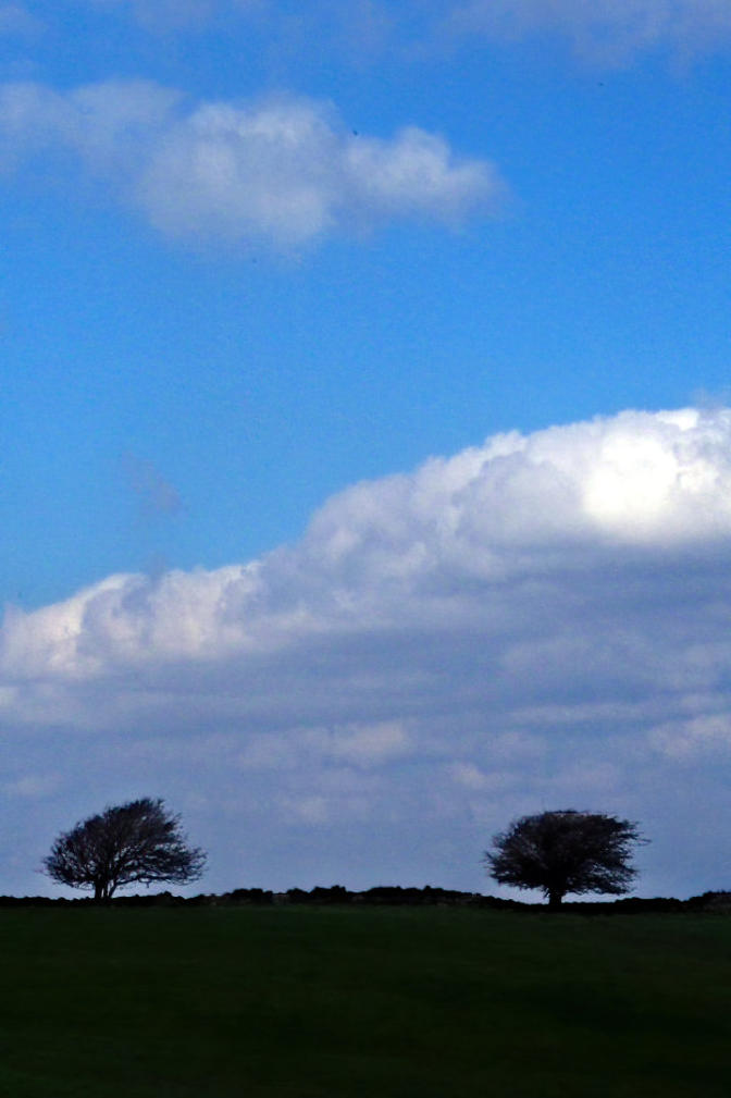 Two hawthorn trees on the skyline next Kirkby Lonsdale Road.