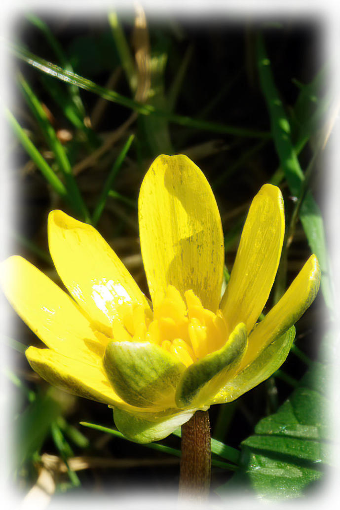 Lesser Celandine in flower at side of Cinderbarrow Lane.