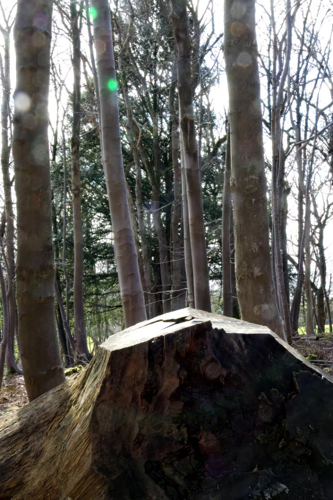 A tree stump at side of the bridleway over the shoulder of Arnside Knott.