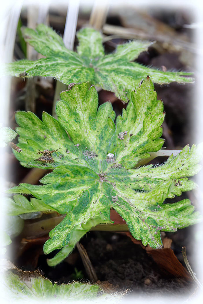 The young leaves of Geranium phaeum ‘Margaret Wilson’ in the back garden