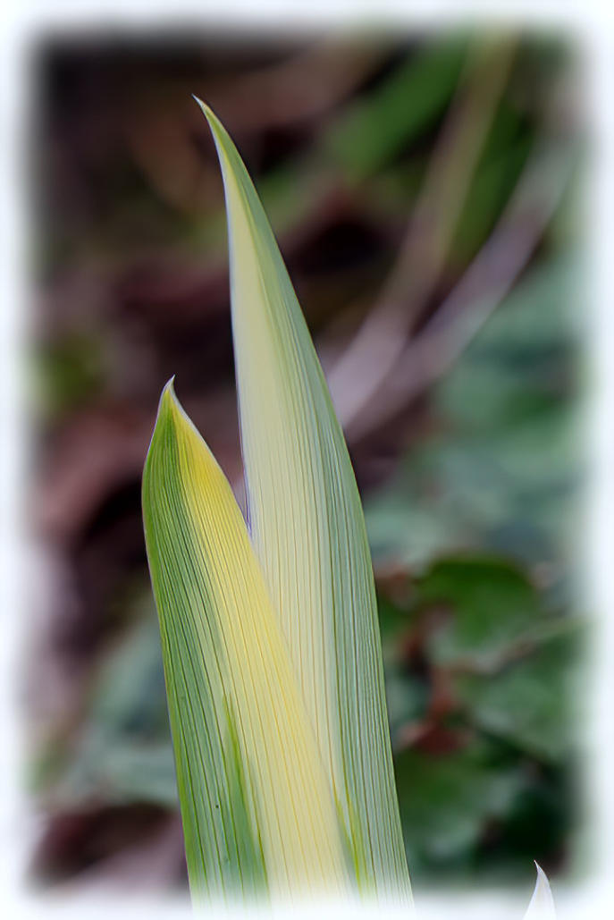 The leaves of Iris pallida ‘Argentea Varigata’ in the back garden.