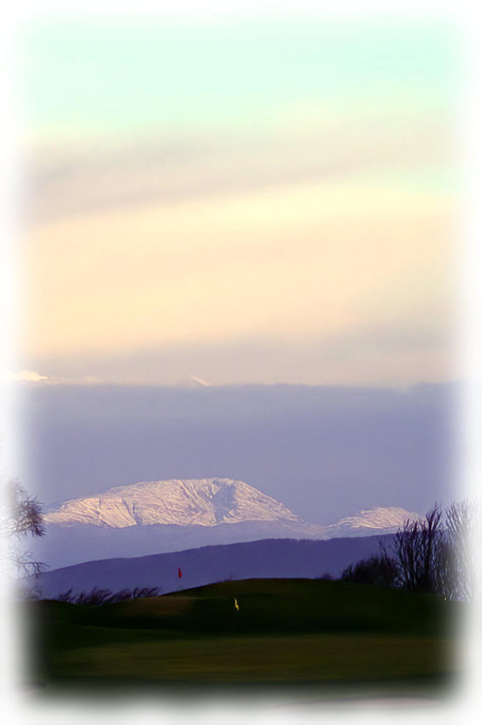 A early morning view of the golf course at work looking towards 10th and then 1st greens with the Lakeland