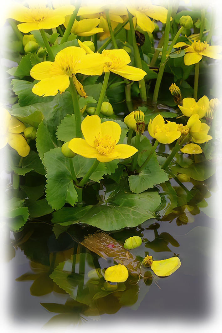 Marsh Marigolds flowering at side of the pond by the 8th fairway at work.
