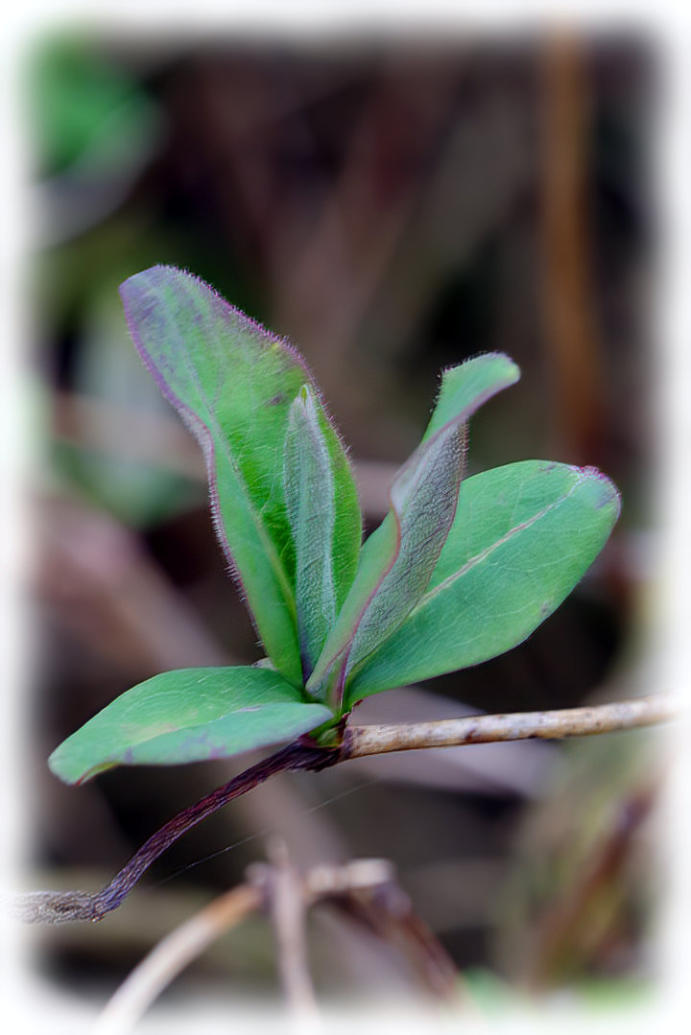 Honeysuckle shoot in the hedge at side of Hilderstone Lane.