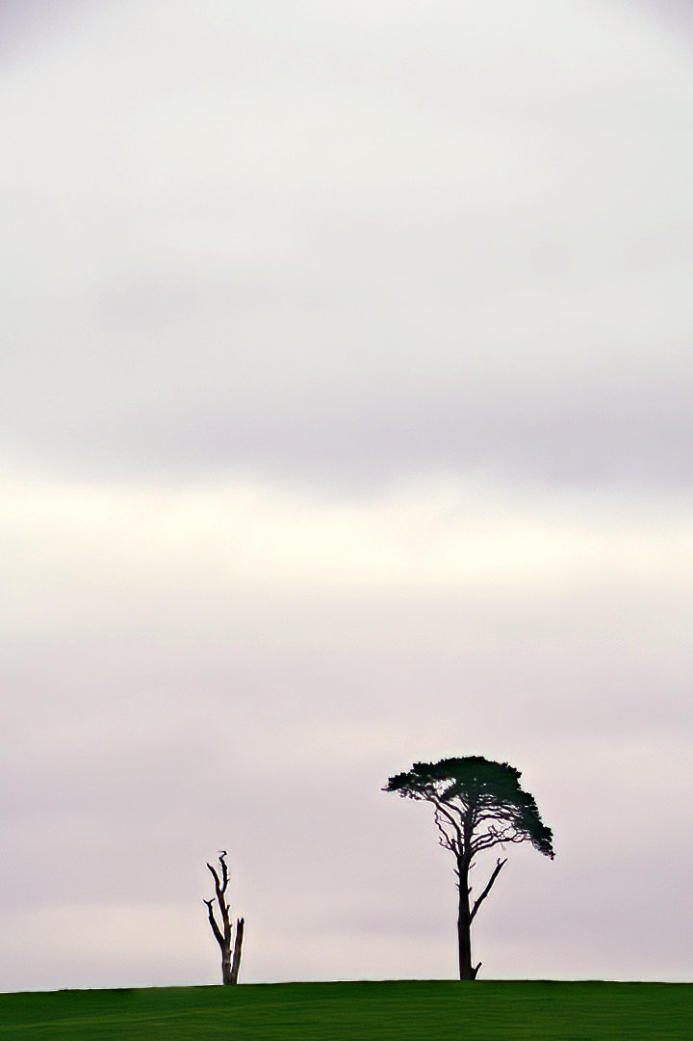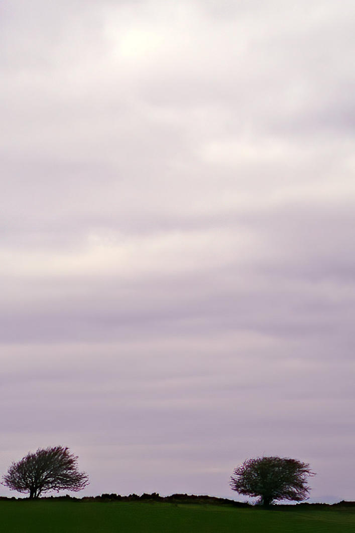 Two Hawthorn trees on skyline at side of Kirkby Lonsdale Road.