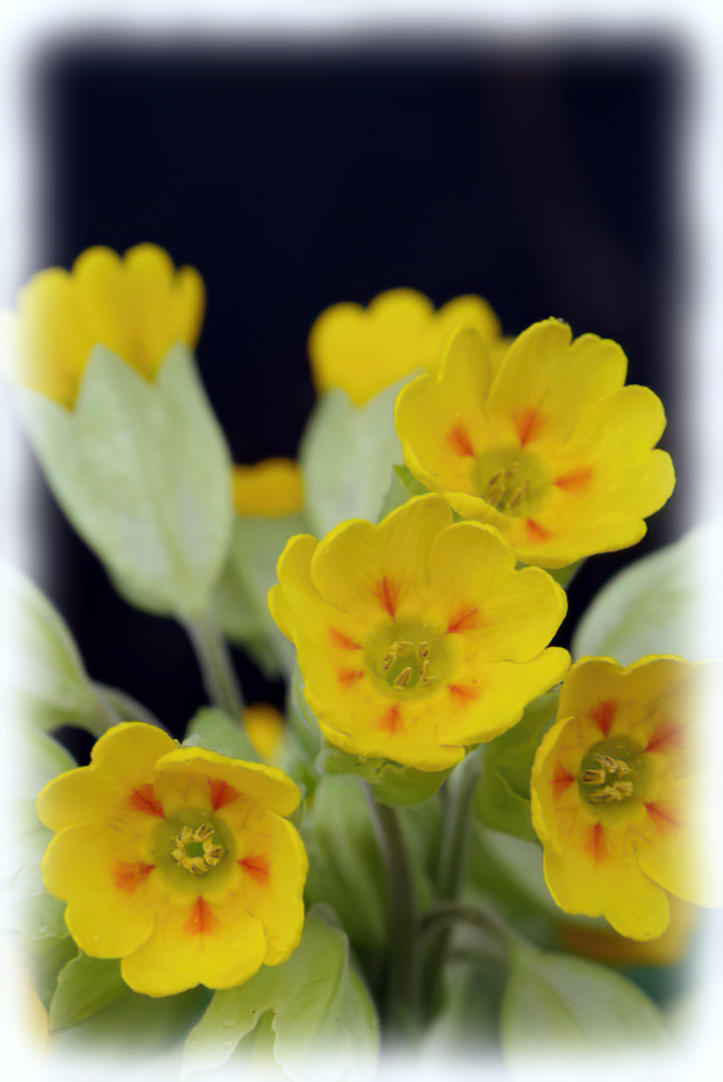 Cowslip flowering in container in the garden.