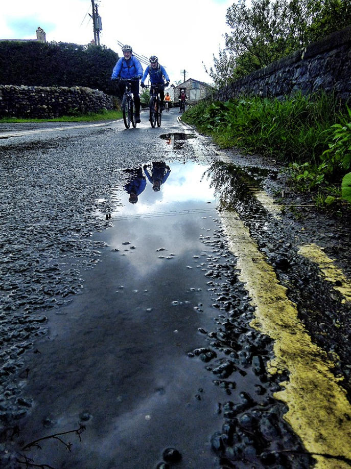 Reflections on the road as we head out of Horton-in-Ribblesdale.