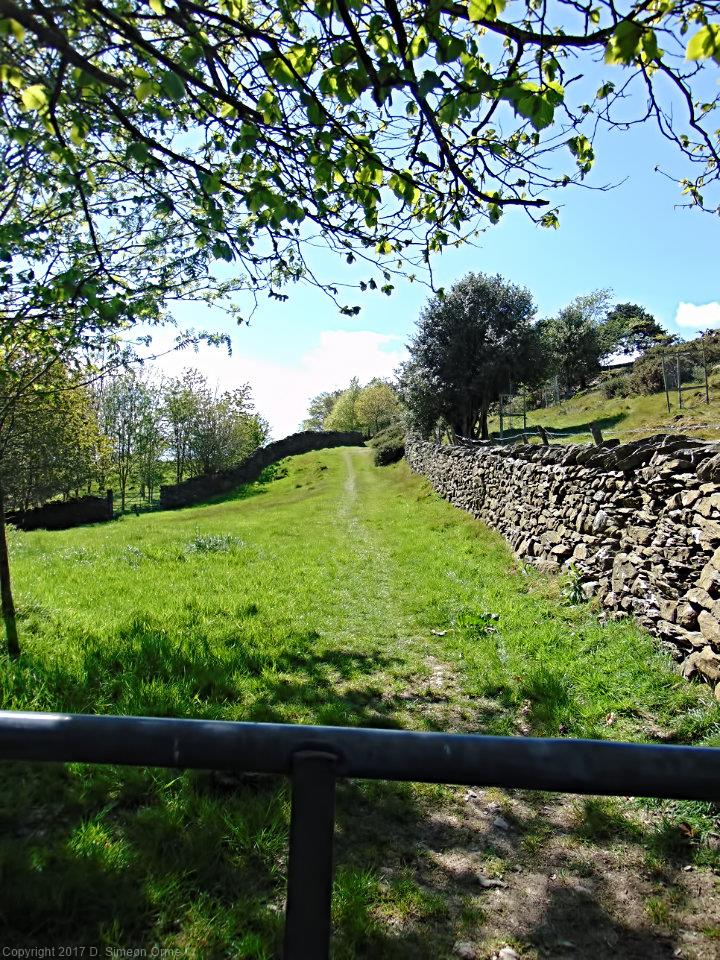 The view at end of the bridleway looking back towards Wall Nook Farm