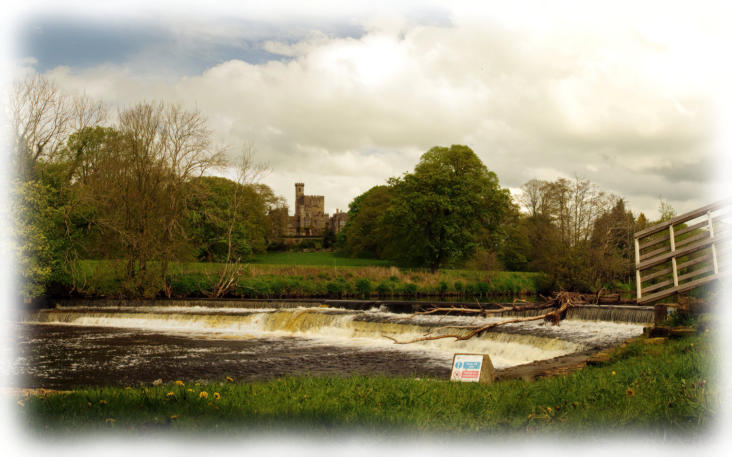 The view looking over the River Wenning towards Hornby Castle (Click photo to see a larger image of the