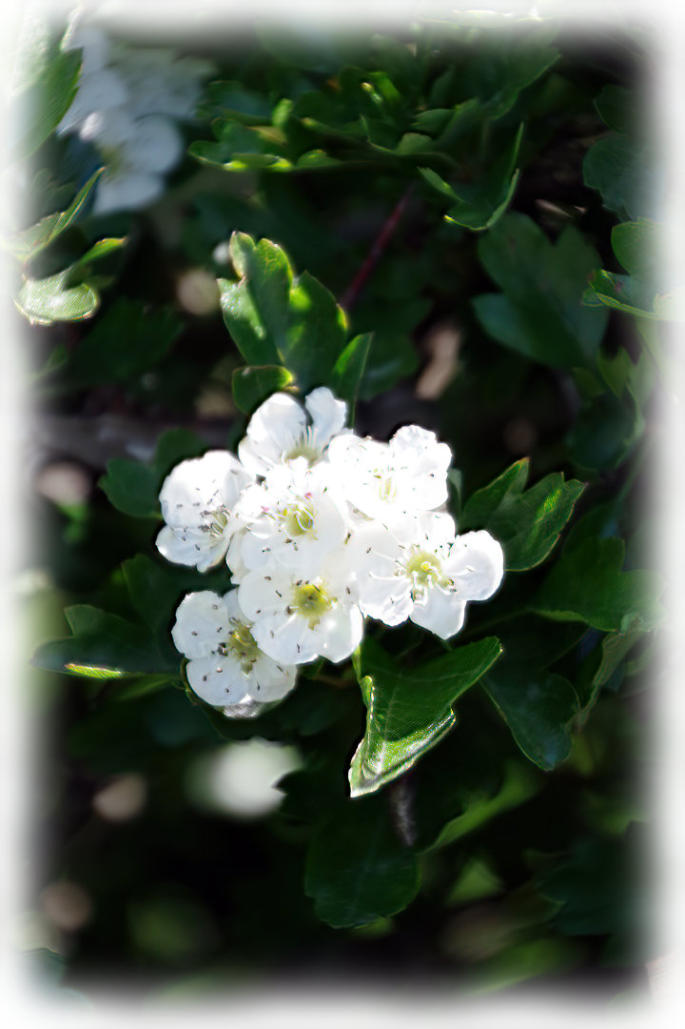 Hawthorn flowering at side of lane.