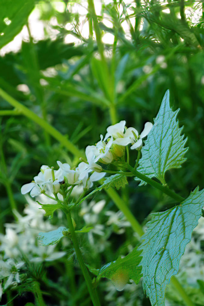 Garlic Mustard flowering at side of the cycle path near Halton.