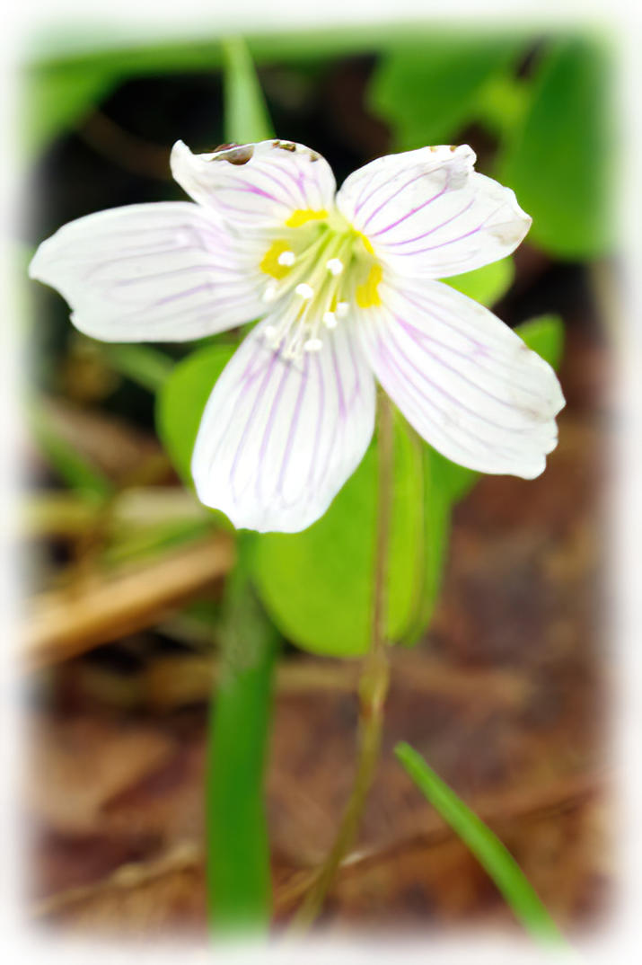 Wood Sorrel flowering in Powley Wood at side of the footpath.