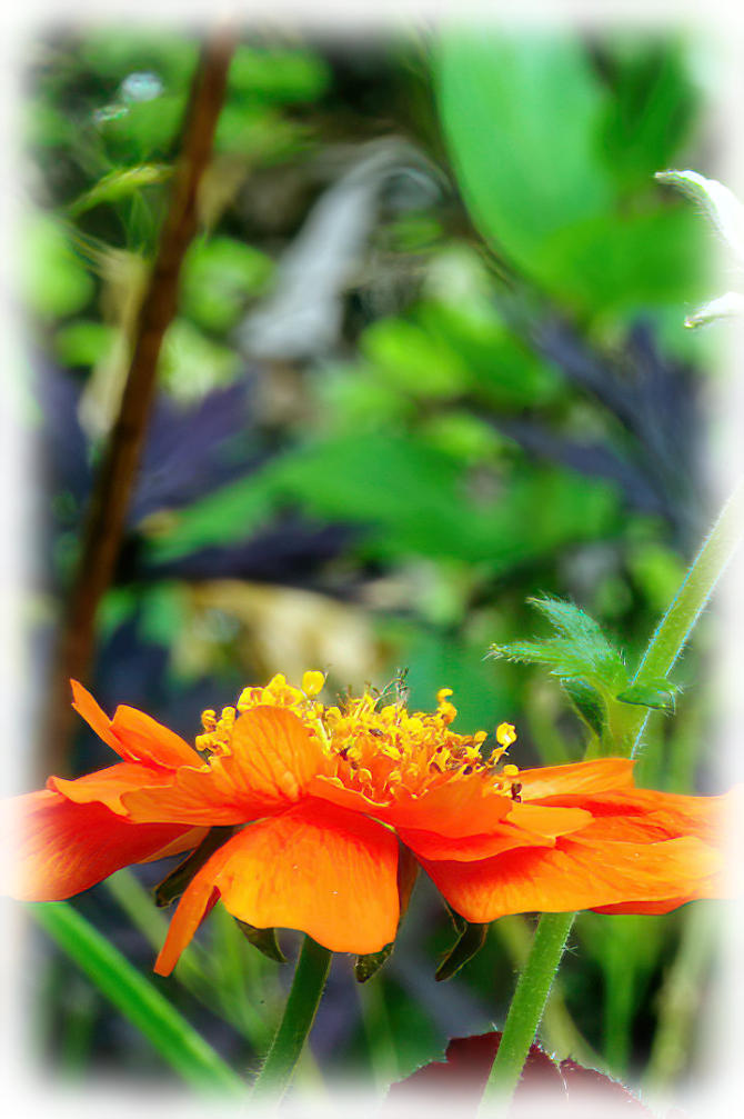 Geum coccineum ‘Borisii Stain’ flowering in the back garden.