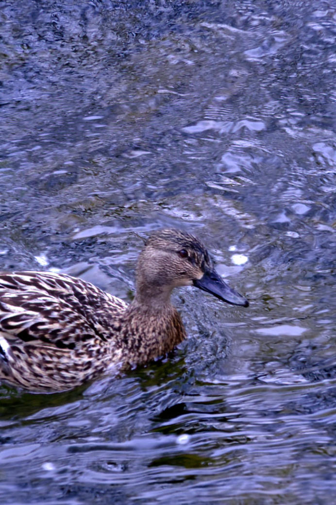 A female Mallard Duck in the River Hodder at Dunsop Bridge.