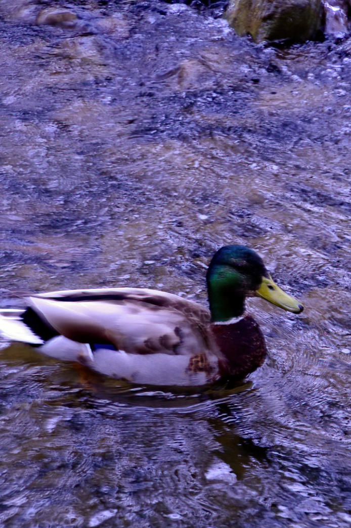 Male Mallard Duck in the River Hodder at Dunsop Bridge.