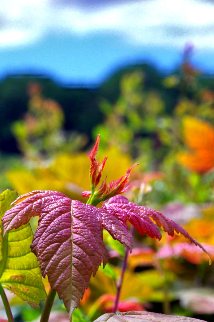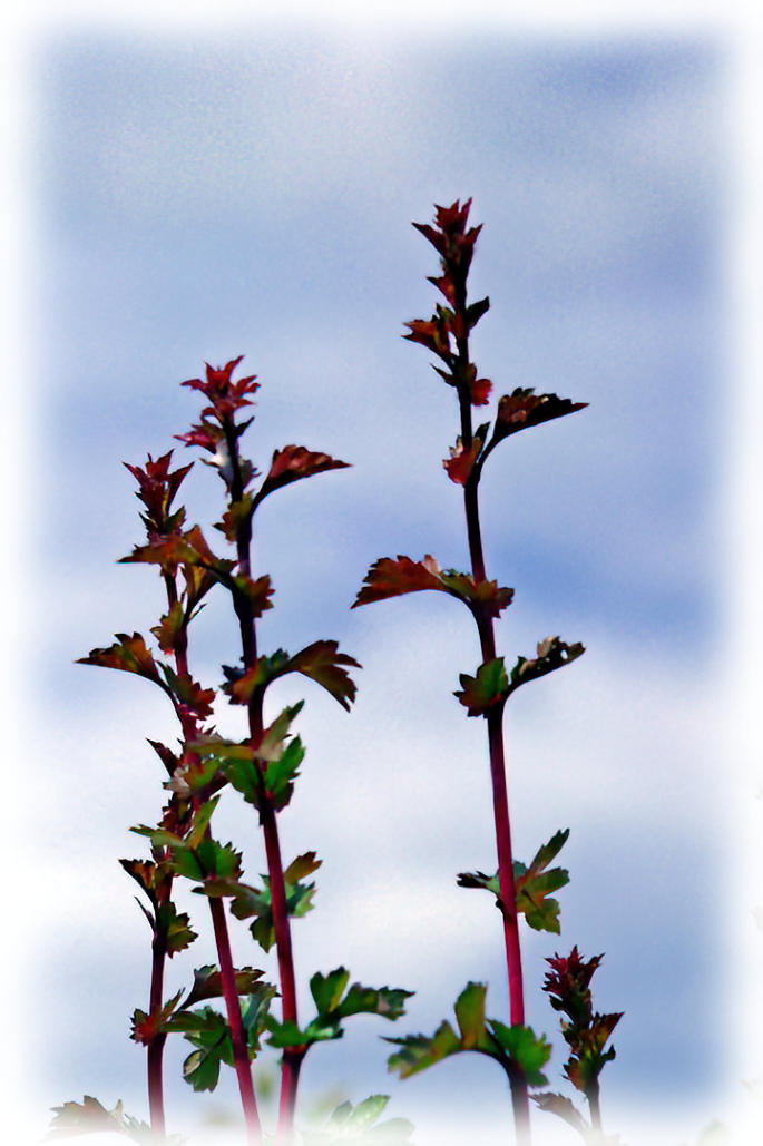 Young Sycamore leaves in the hedge at side of Russells Lane.