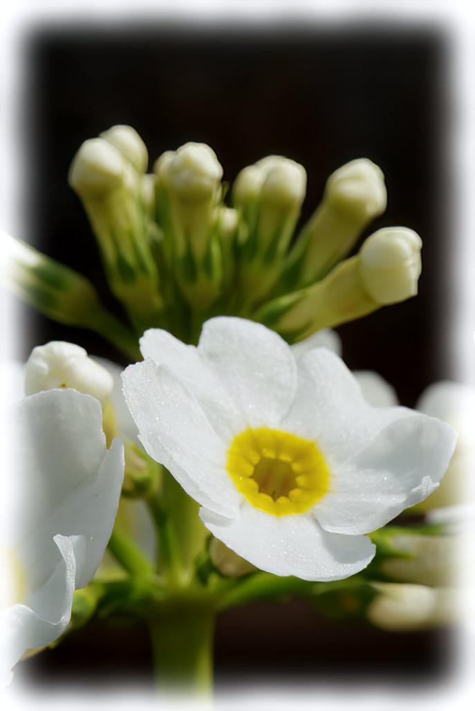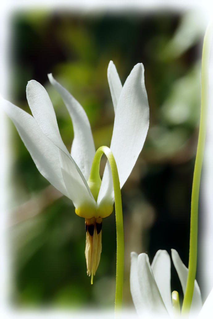 Dodecatheon meadia ‘Alba’ flowering in the back garden.