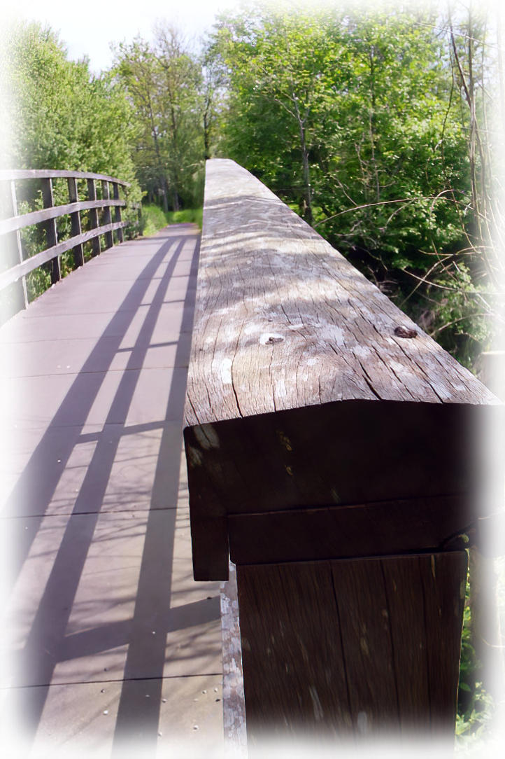 The view looking back across foot / cycle bridge at end of cycle path along side the A591.