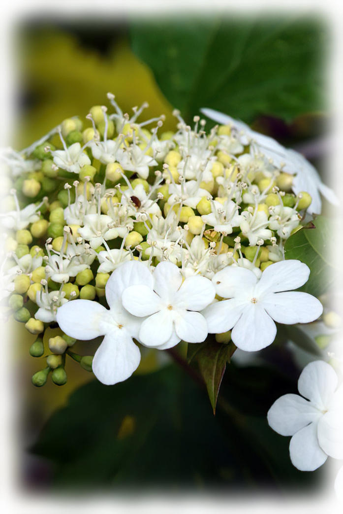 Viburnum opulus ‘Compactum’ flowering in the back garden.