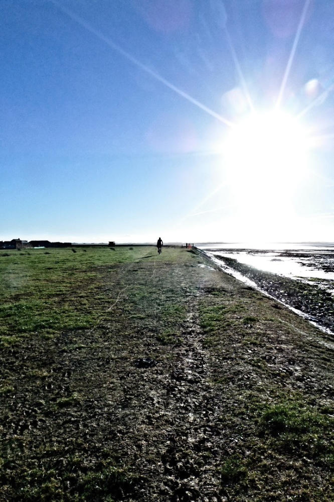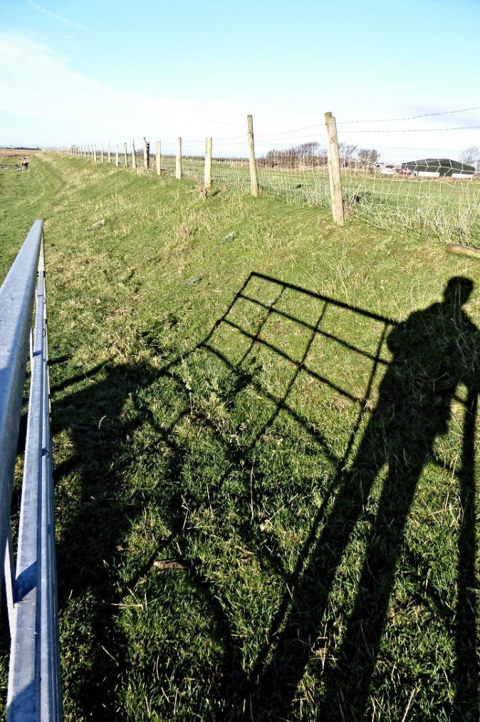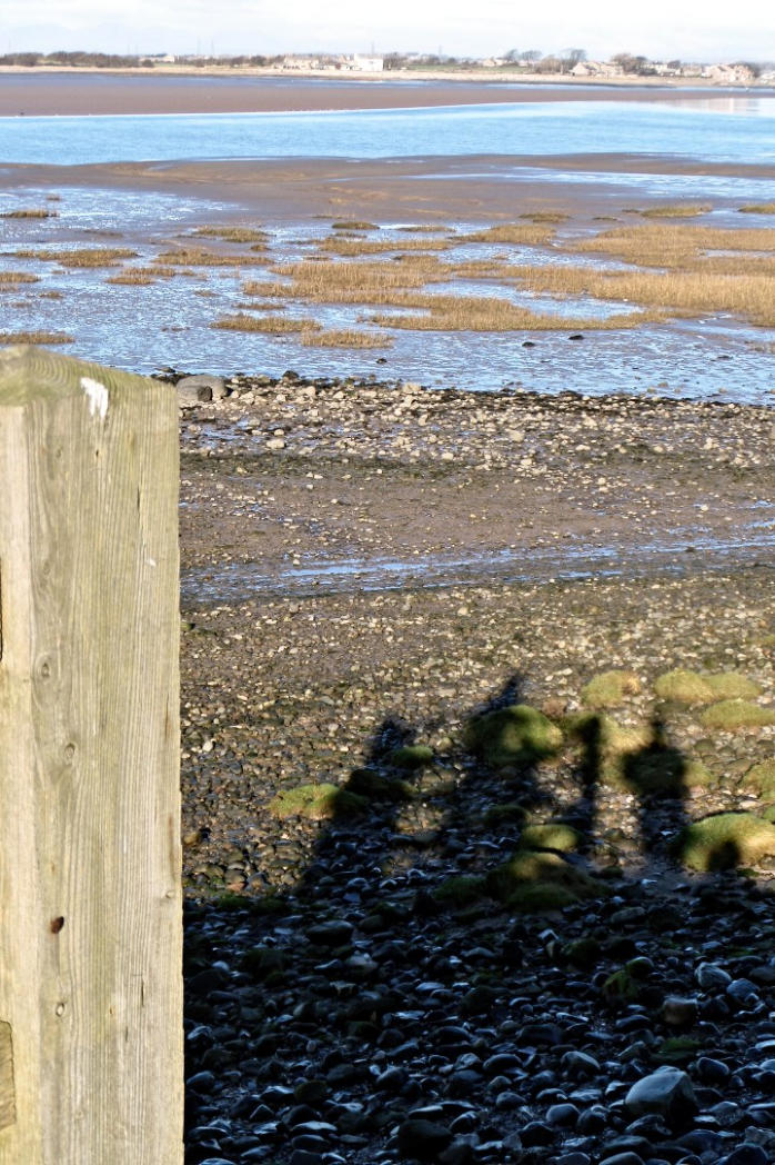 Shadows on the shoreline as we head along the path to Cockersand Abbey