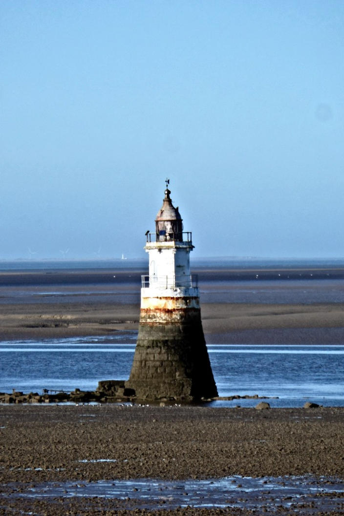 A close up of the lighthouse beacon at the mouth of the River Lune