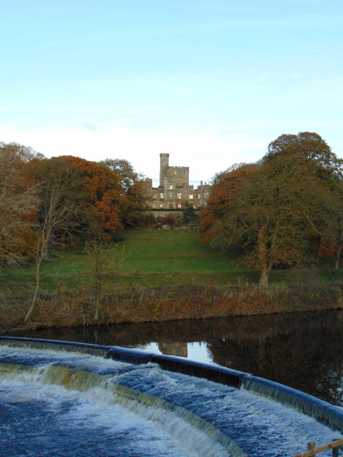 The view looking across the River Wenning towards Hornby Castle.