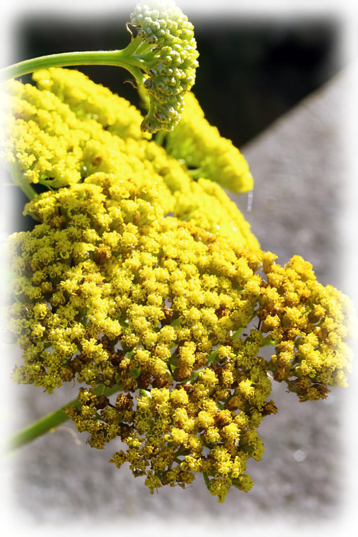 Yellow Achillea flowering in the wildlife garden at the RSPB Visitor Centre at Leighton Moss.