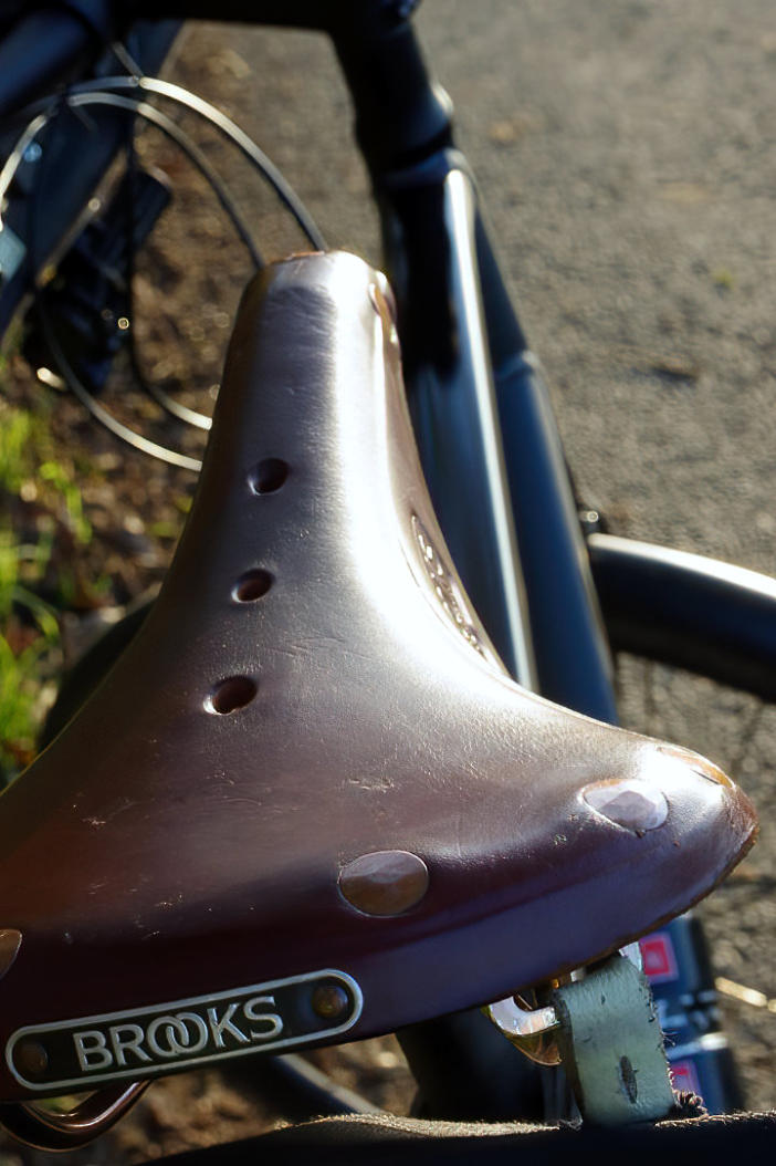 Sunlight shining down on my bike at side of Hilderstone Lane.